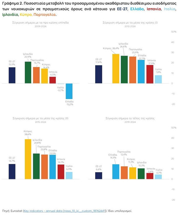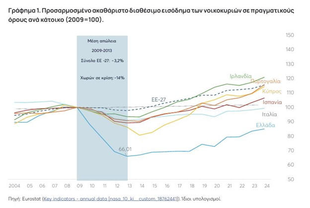 νοικοκυριών την περίοδο 2004–2024 στην Ελλάδα και σε άλλες