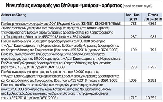 για ξέπλυμα «μαύρου» χρήματος την περίοδο από 1ης Ιανουαρίου