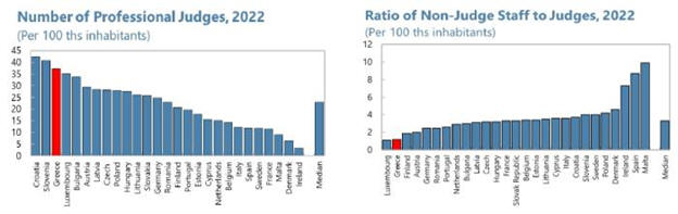 στην τρίτη θέση της ΕΕ σε αριθμό υπηρετούντων δικαστών σε