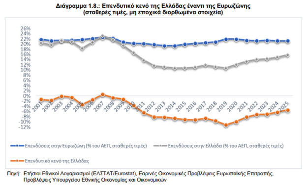 μισού (51,4%) του επενδυτικού κενού της Ελλάδας το 2025