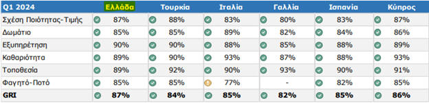και σχέσης ποιότητας-τιμής (87%).