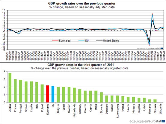 ΑΕΠ σε ετήσια βάση στην ευρωζώνη το τρίτο τρίμηνο του 2021