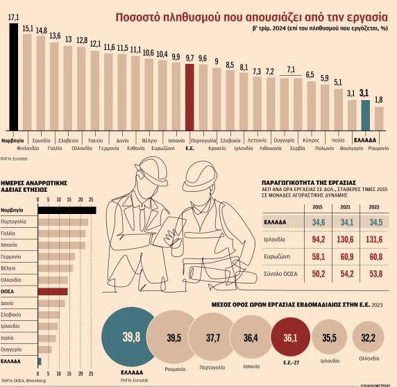 Eurostat για το ποσοστό εργαζομένων που απουσιάζουν από τη