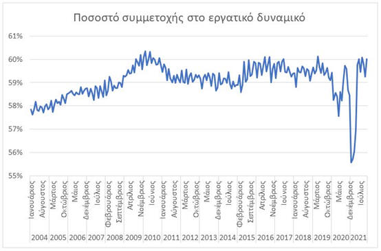 Ελλάδα, το ποσοστό συμμετοχής στο εργατικό δυναμικό είναι