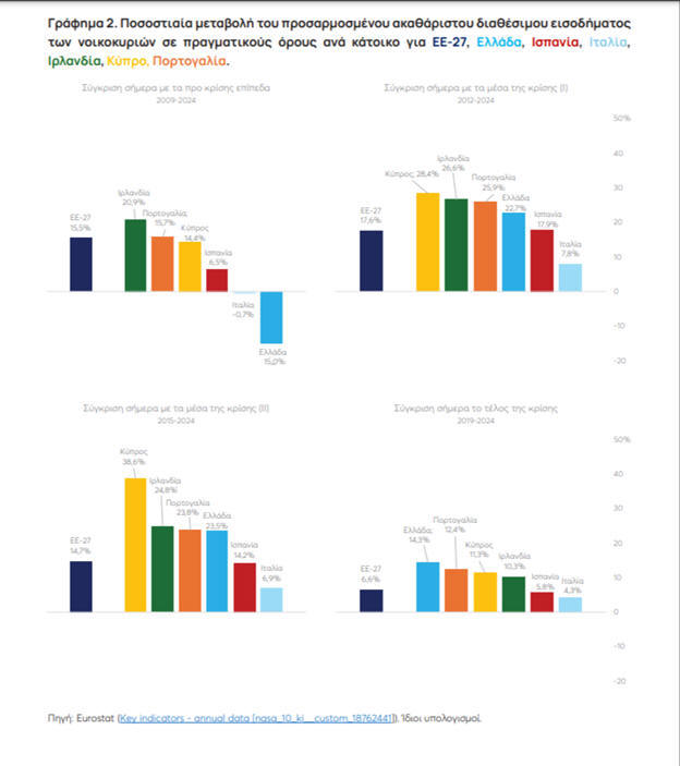 (2004–2024), η Ελλάδα παραμένει περίπου 5% χαμηλότερα από τα