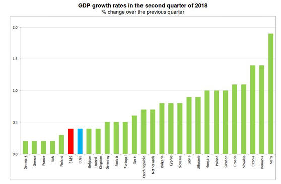 της Eurostat, η οικονομία της ευρωζώνης αναπτύχθηκε με ρυθμό