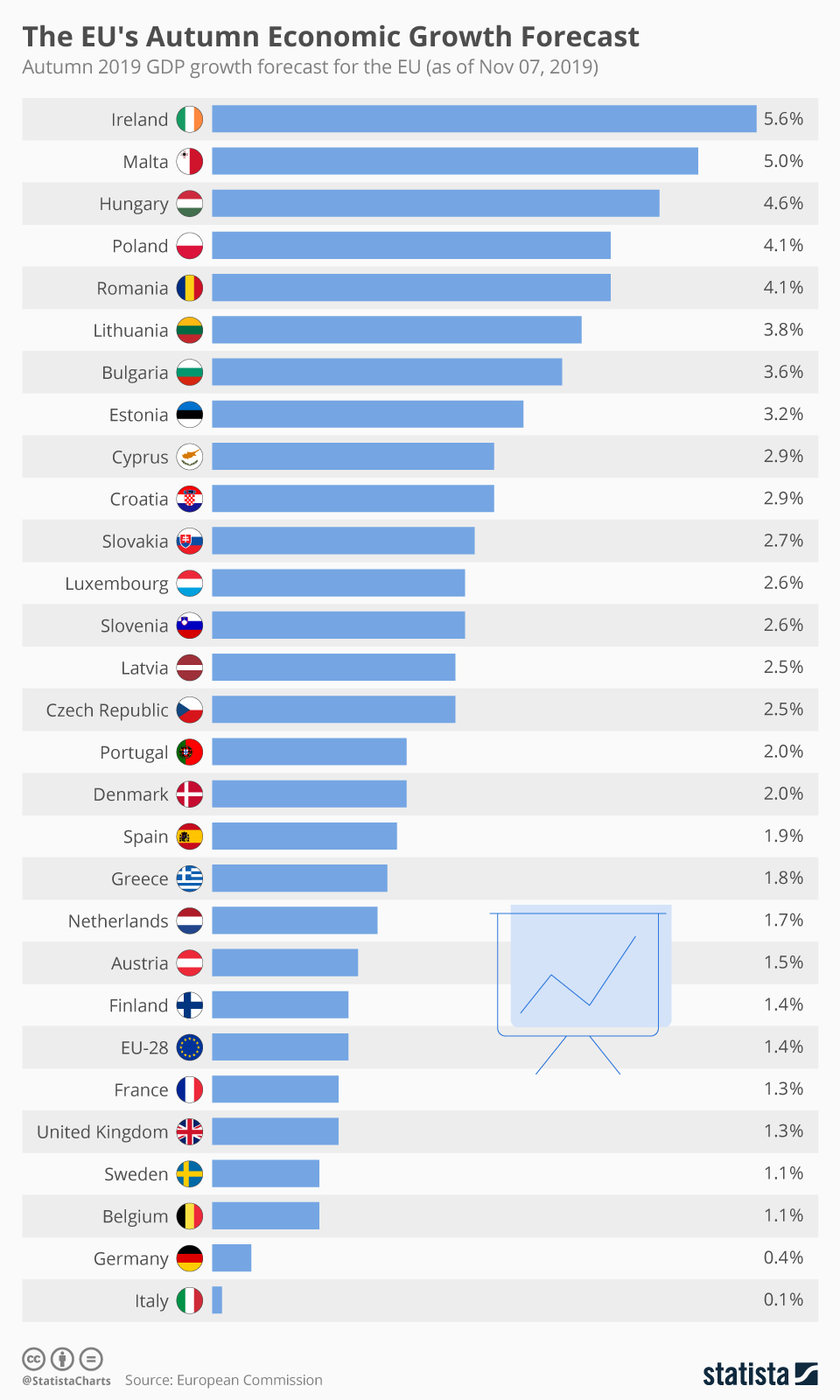 είναι πρώτη, με ανάπτυξη 5,6% η Ιρλανδία. Επίσης, μεγαλύτερη