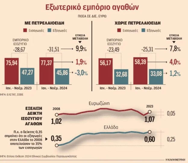 από τις εισαγωγές. Σύμφωνα με την ετήσια έκθεση 2024 του