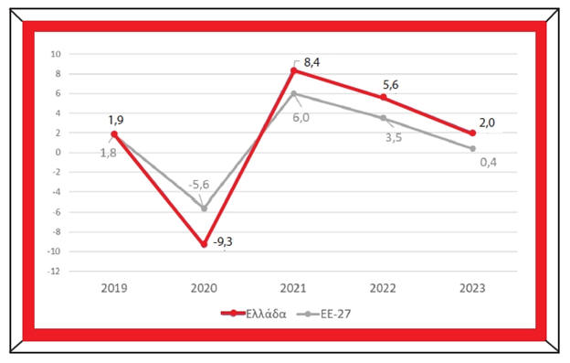 το ελληνικό ΑΕΠ χαρακτηρίζεται από σαφώς υψηλότερο ποσοστό