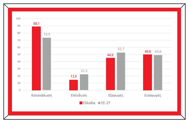 Επενδύσεις και οι Εξαγωγές υστερούν κατά 8 περίπου μονάδες.