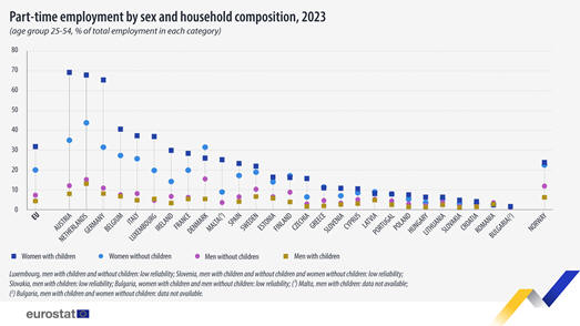 part-time (31,8%), έναντι 20% των γυναικών χωρίς παιδιά.