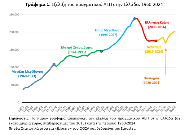 κατά κεφαλήν ΑΕΠ από το 1960 έως το 2024, η Ελλάδα βίωσε στο