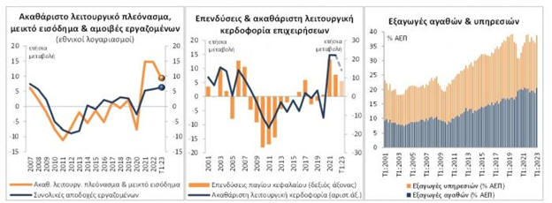 σταθερές τιμές) το 1ο τρίμηνο του 2023, με την αρνητική τους