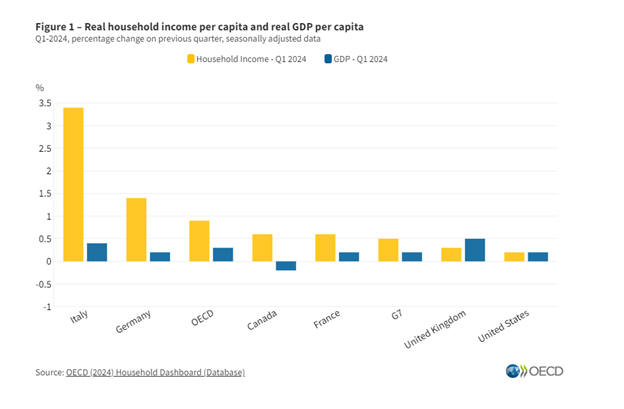 κεφαλήν εισόδημα στον ΟΟΣΑ αυξήθηκε κατά 0,9% το πρώτο