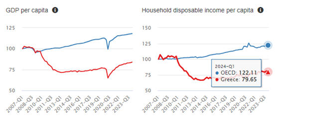 εισόδημα της Ελλάδας διαμορφώνεται στο 79,65% του επιπέδου