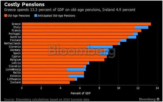 Ελλάδα δαπανά το 13,3% για τις συντάξεις ηλικιωμένων,