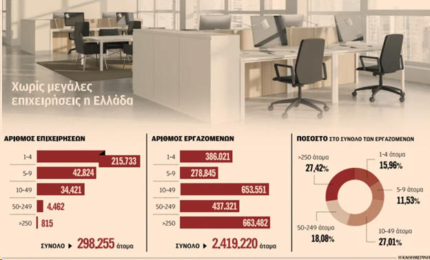 έλλειψη εταιρειών που να απασχολούν πάνω από 100-150 άτομα