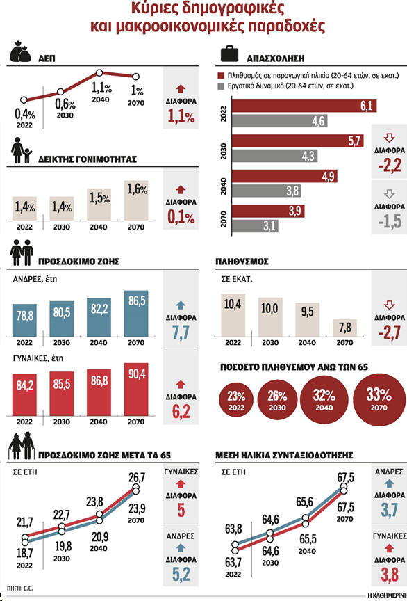 το 2070 από 8,6 εκατ. άτομα που προέβλεπε στις δημογραφικές