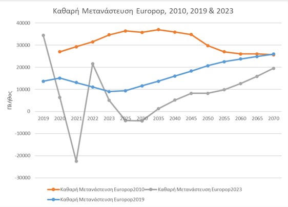 το 2023), ενώ η μέση ετήσια μεταναστευτική ροή θα μειωθεί σε
