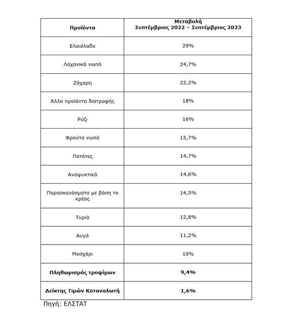 πληθωρισμός οδηγεί όλες τις καταναλωτικές τιμές σε υψηλότερα