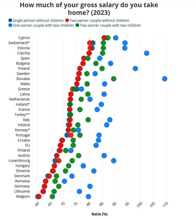η Σουηδία 1.449, η Φινλανδία 1.874 και η Ισλανδία 1.440 ευρώ