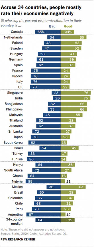 στις χώρες που αξιολογούν αρνητικά την οικονομία τους