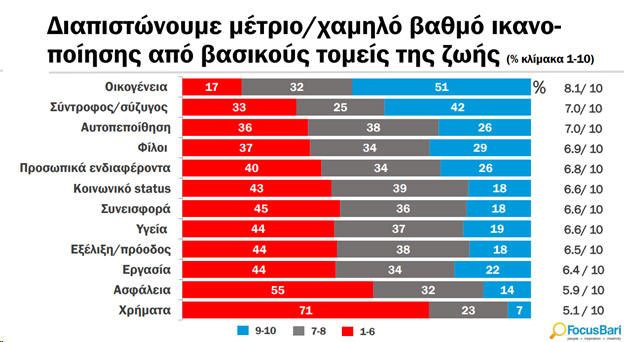 5 στους 10 δυσαρεστημένοι) και η εργασία (6,4/10 και