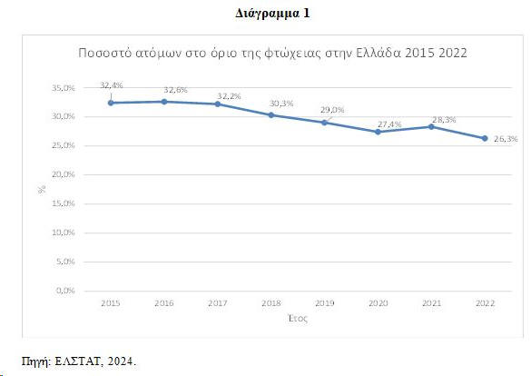 των ατόμων στο όριο της φτώχειας στην Ελλάδα μειώθηκε από το