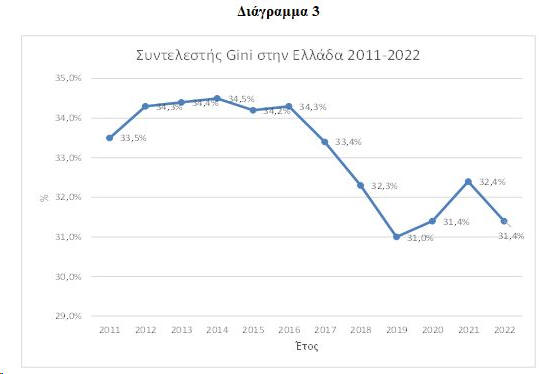 δείκτης Gini ήταν χαμηλότερος κατά 2,1 ποσοστιαίες μονάδες.