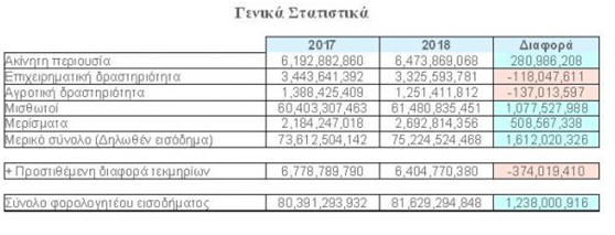 81,6δις ευρώ συνολικού φορολογητέου εισοδήματος, τα 61,5δις