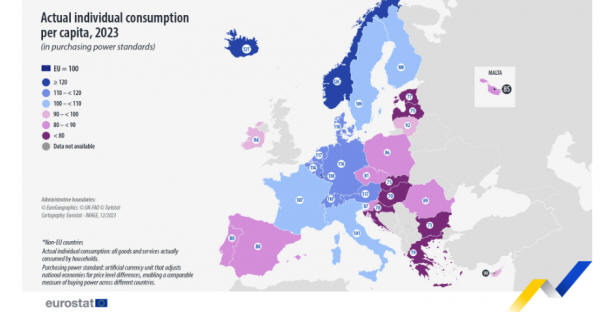 χαμηλότερη κατά κεφαλήν πραγματική ατομική κατανάλωση στην