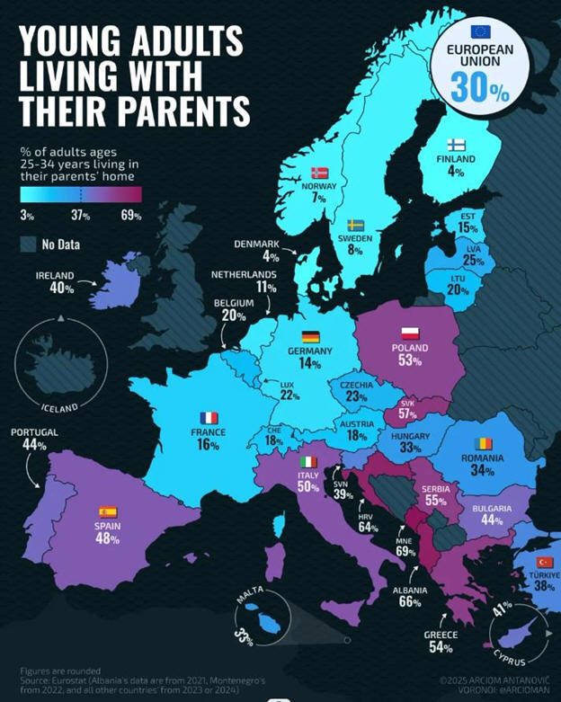 τους γονείς, καθώς οι περισσότεροι νέοι ηλικίας 25-34 ετών