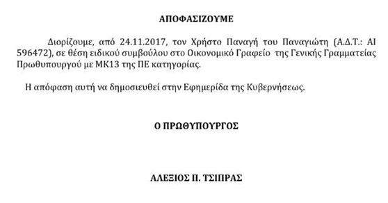 αργόσχολους συμβούλους, ο πρωθυπουργός αποκτάει άλλον έναν