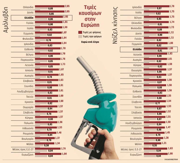 έβδομη ακριβότερη στην Ευρώπη. Η λιανική τιμή του πετρελαίου