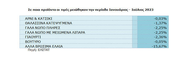 τροφίμων και ποτών, οι τιμές τον Ιούλιο του 2023 ήταν