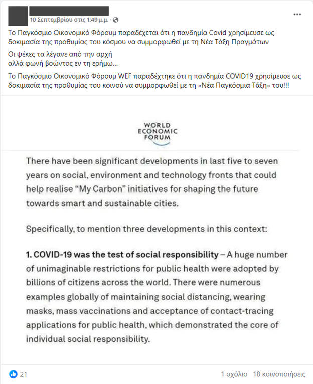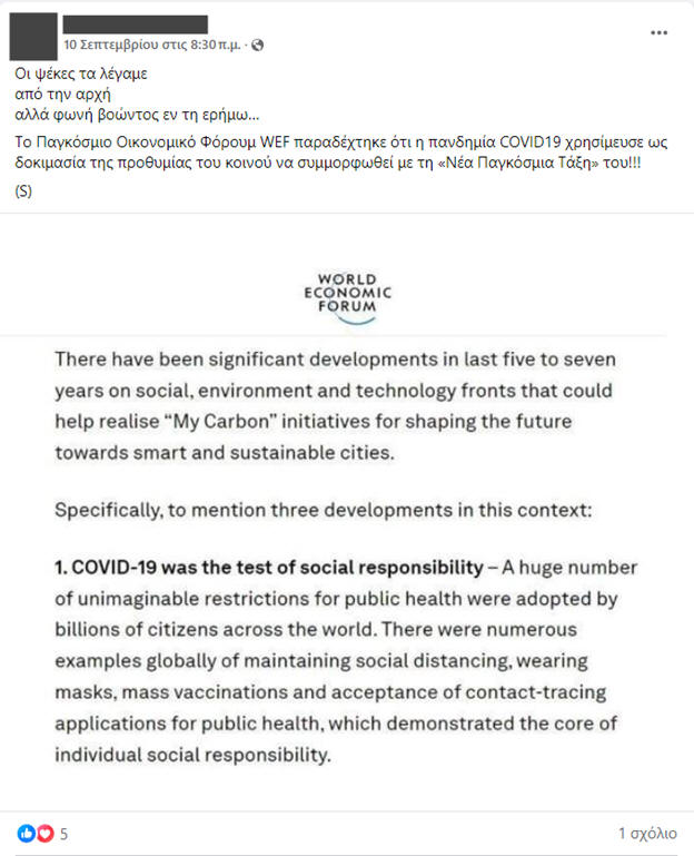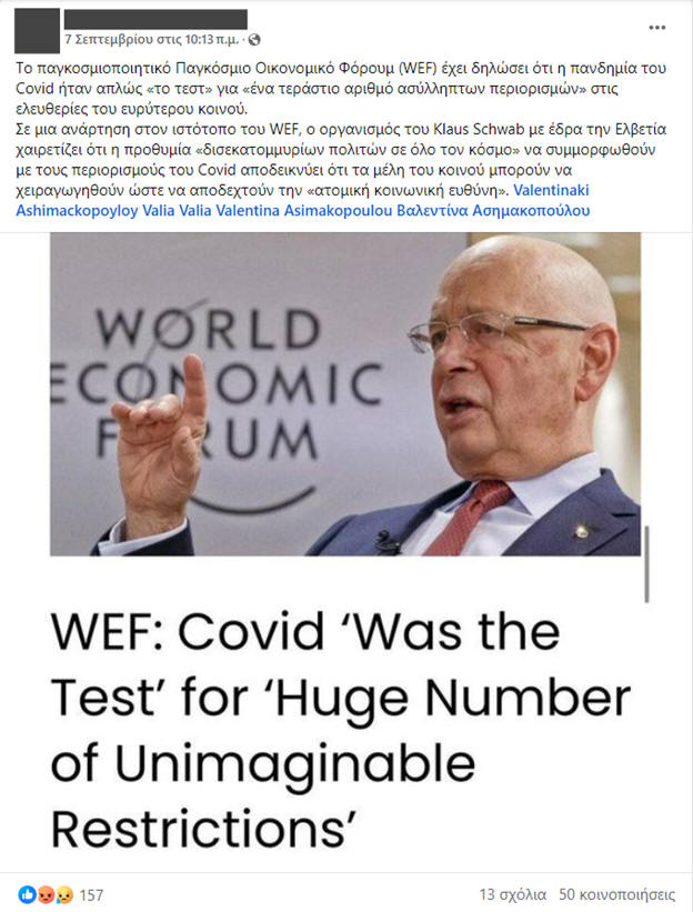πανδημίας, στο άρθρο του Παγκόσμιου Οικονομικού Φόρουμ, δεν