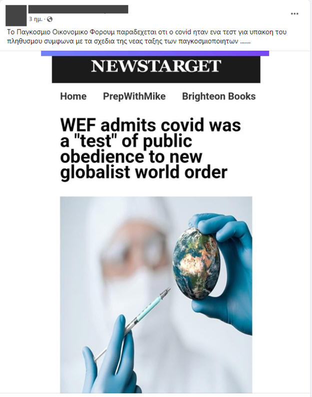 Οικονομικό Φόρουμ ΔΕΝ παραδέχθηκε πως η πανδημία COVID-19