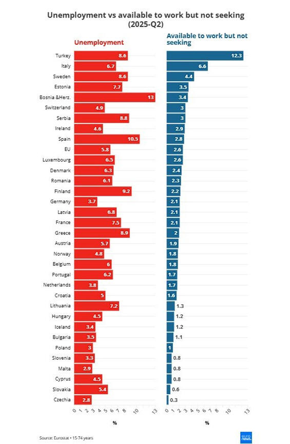 συνολικό ποσοστό ανεργίας –επίσημης και κρυφής– στην ΕΕ