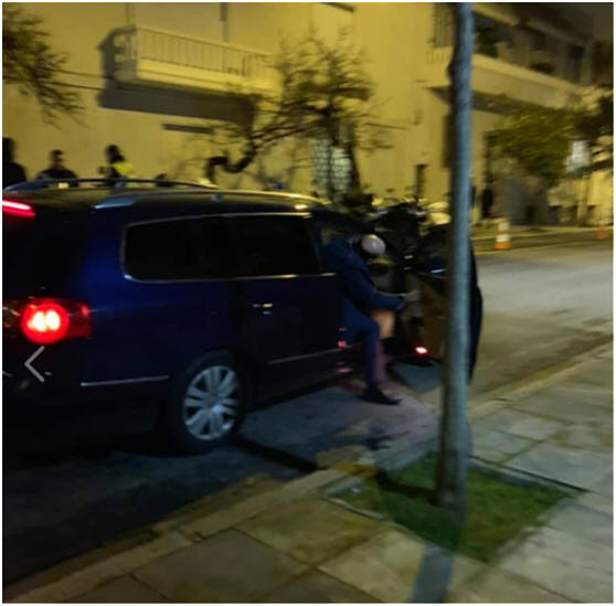 επιβιβάζεται σε ένα μαύρο αυτοκίνητο και αναχωρεί από το