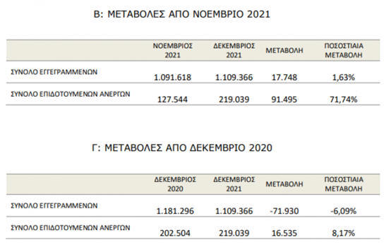 ανήλθε το σύνολο των εγγεγραμμένων ανέργων τον Δεκέμβριο του