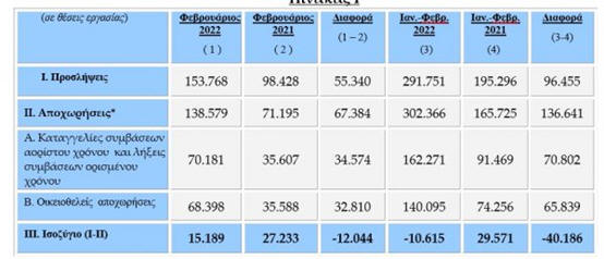 απασχόλησης αναφέρει χαρακτηριστικά ότι «τον Ιανουάριο 2022