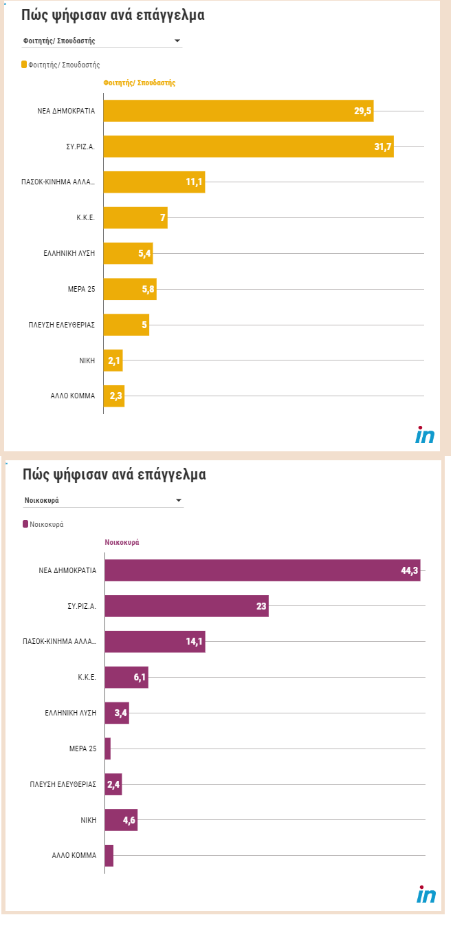 ψήφισαν οι ψηφοφόροι ανά επαγγελματική κατηγορία. Είναι