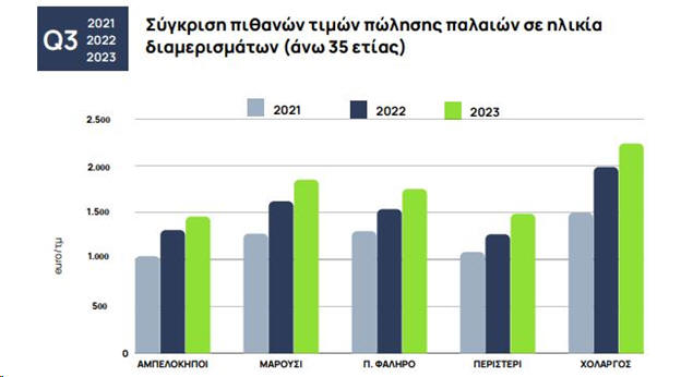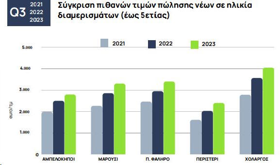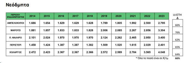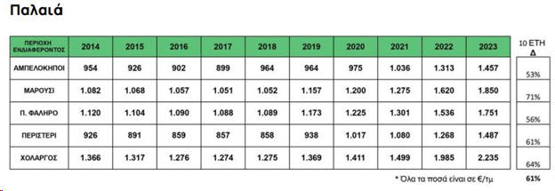 τ.μ. που κόστιζαν πριν μια δεκαετία, το 2023 καταγράφηκε