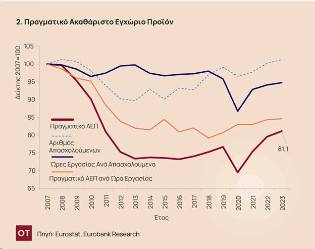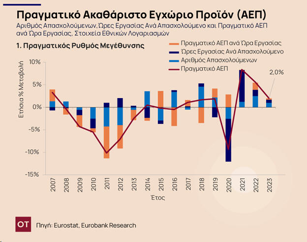 ώρες εργασίας ανά εργαζόμενο στήριξαν την ανάπτυξη το 2023,