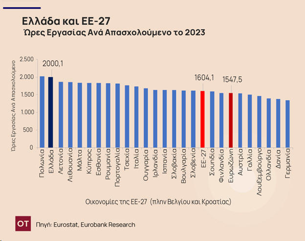 ΕΕ η Ελλάδα στις ώρες εργασίας ανά απασχολούμενο