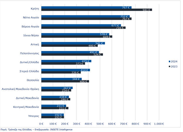 ευρώ σε σχέση με το αντίστοιχο του 2024 και διαμορφώθηκε σε