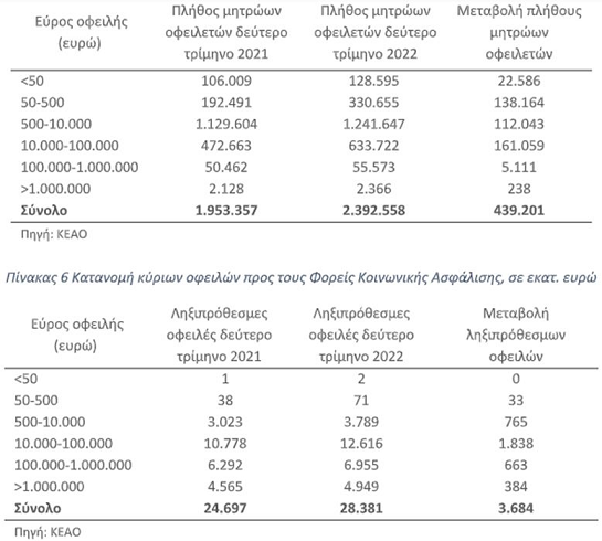 αντίστοιχα στοιχεία για τα χρέη στα ασφαλιστικά ταμεία.