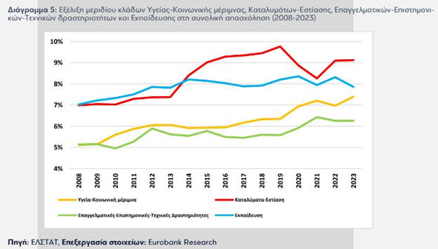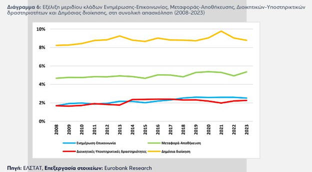 ποσοστό της στη συνολική απασχόληση την περίοδο 2008-2023,