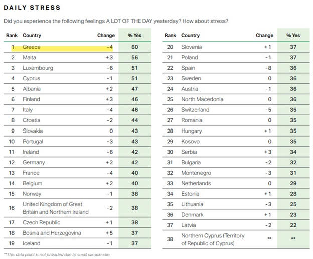 της Gallup αποτυπώνονται εκτός του στρες και άλλα αρνητικά