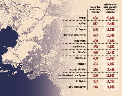 ενοικίασης στην Αττική διαμορφώνεται σε 684 ευρώ/μήνα, ποσό